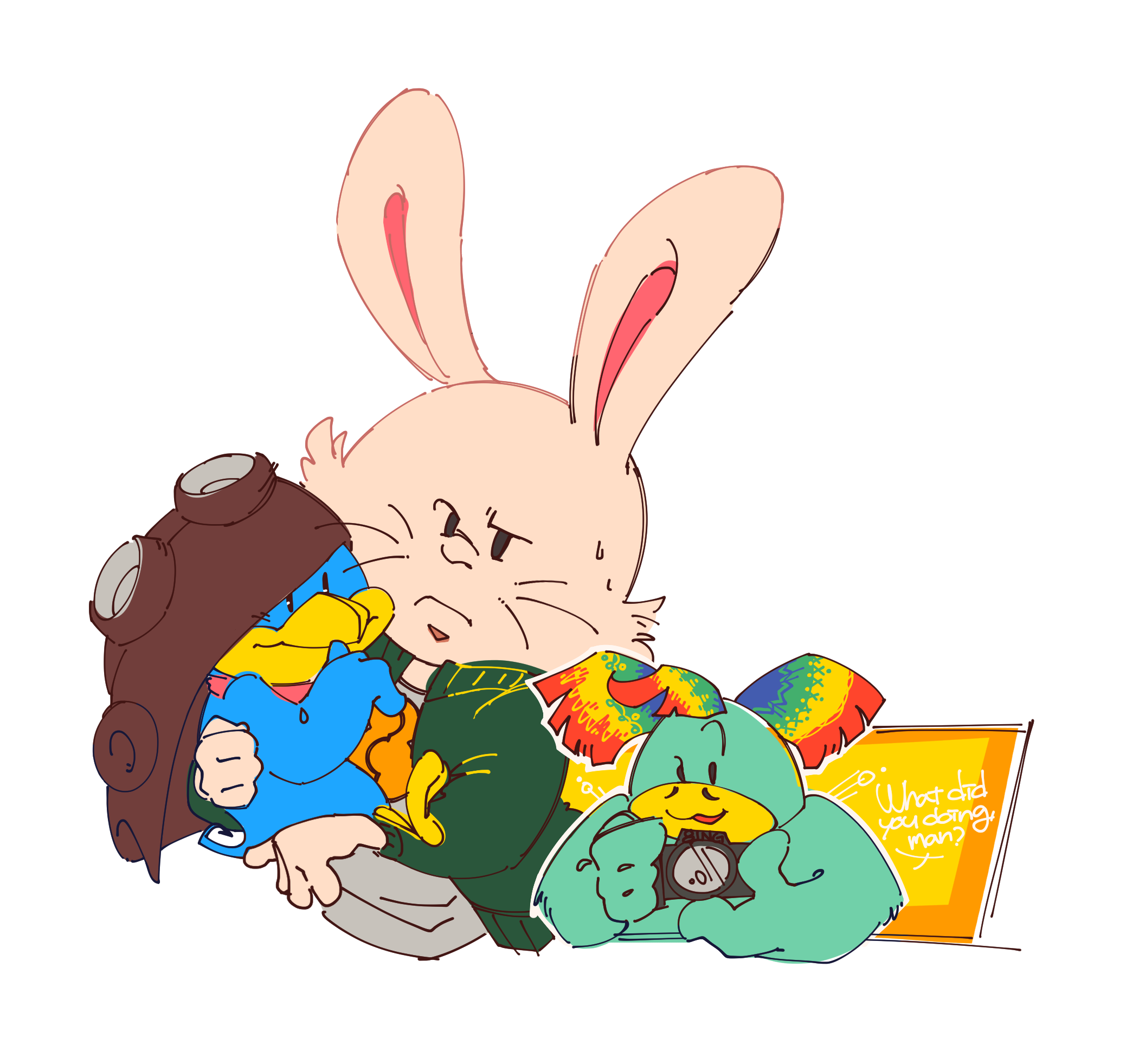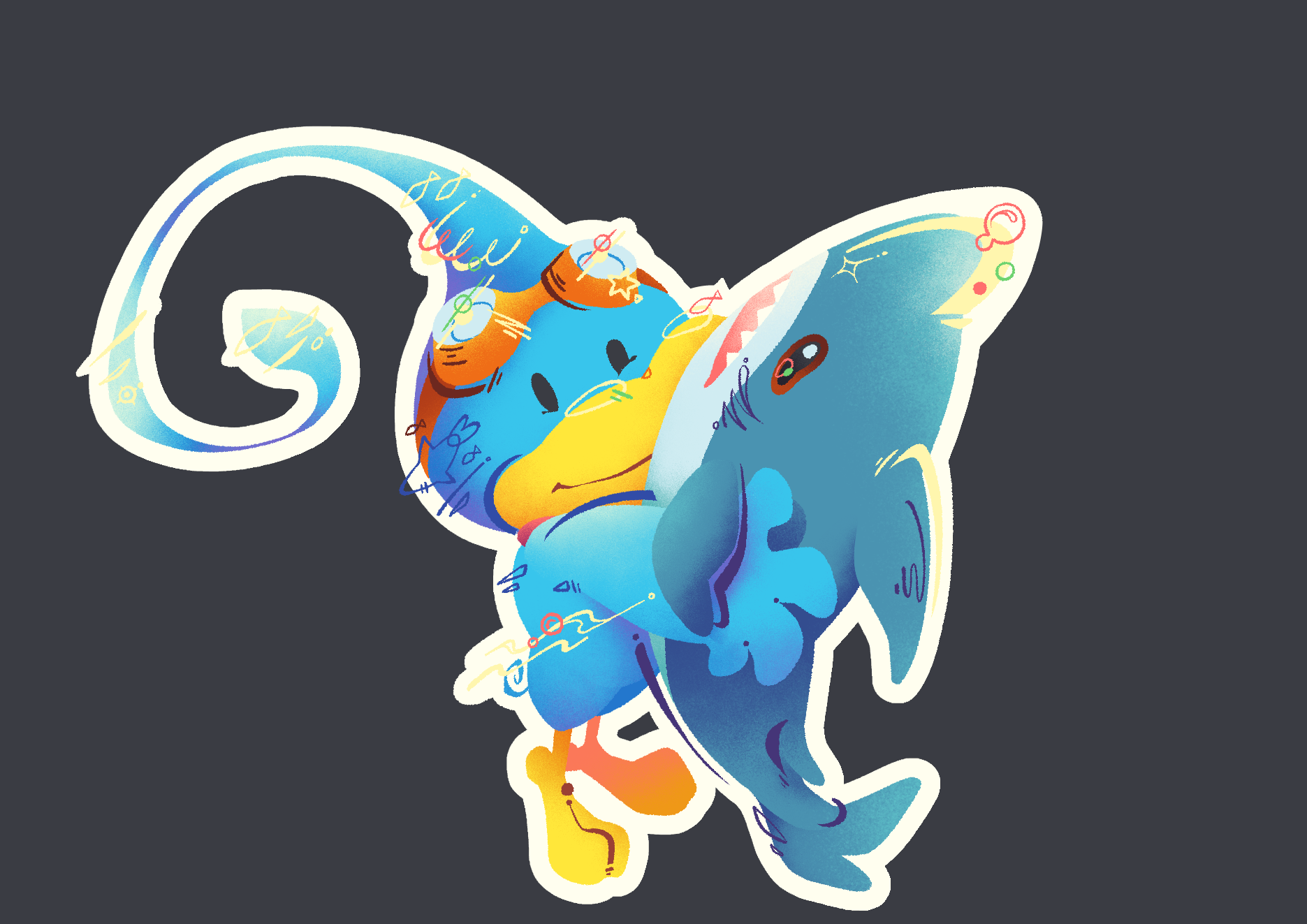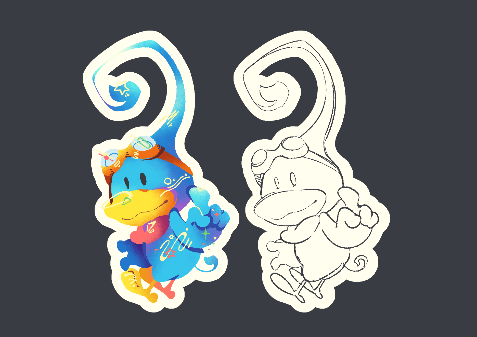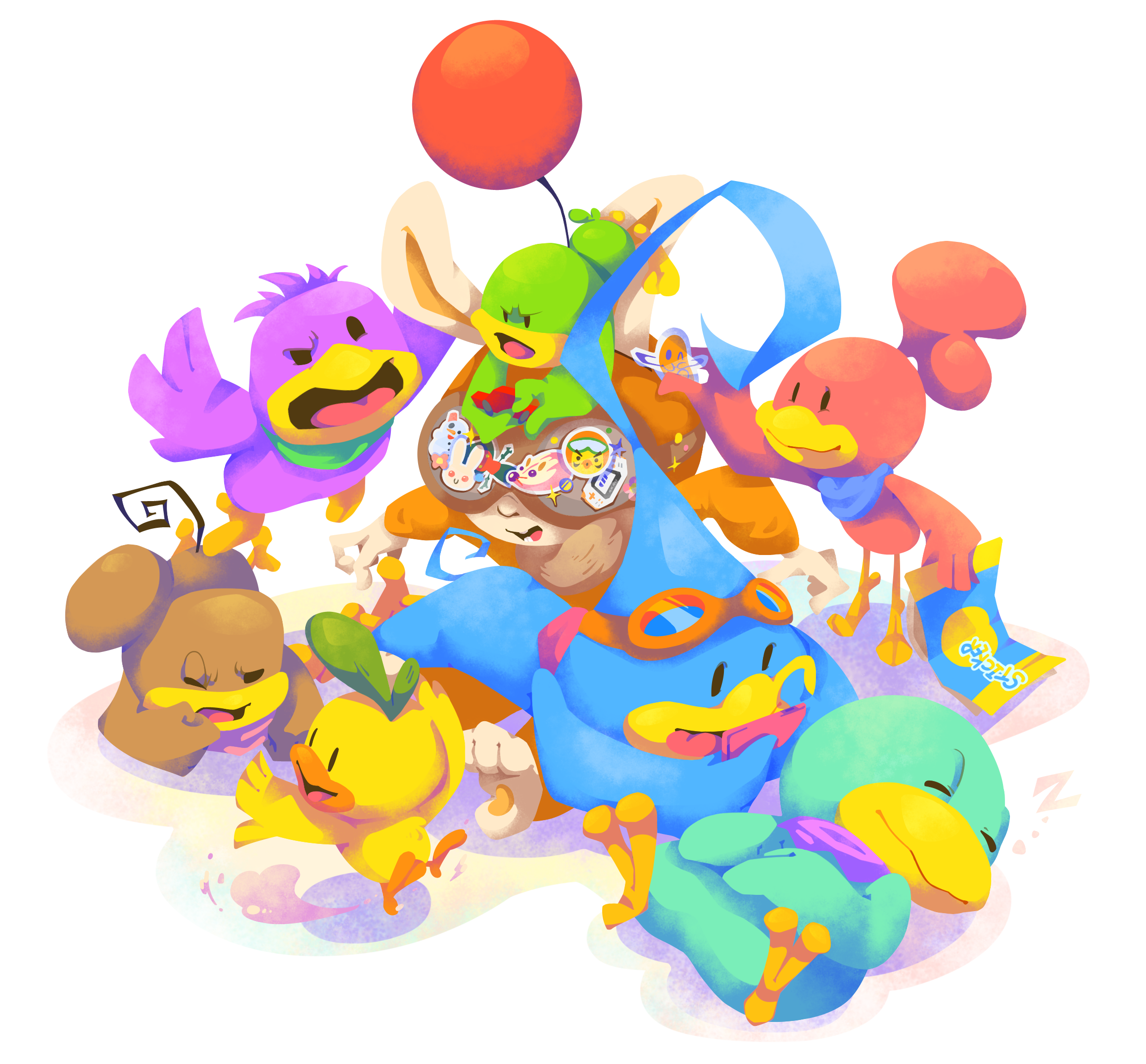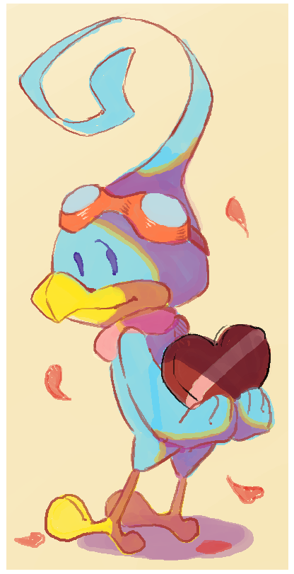 I'm a huge Kururin fan since middle school and feel more comfortable when only put Kururin fanworks on public, so most drawings are Kururin-related.
