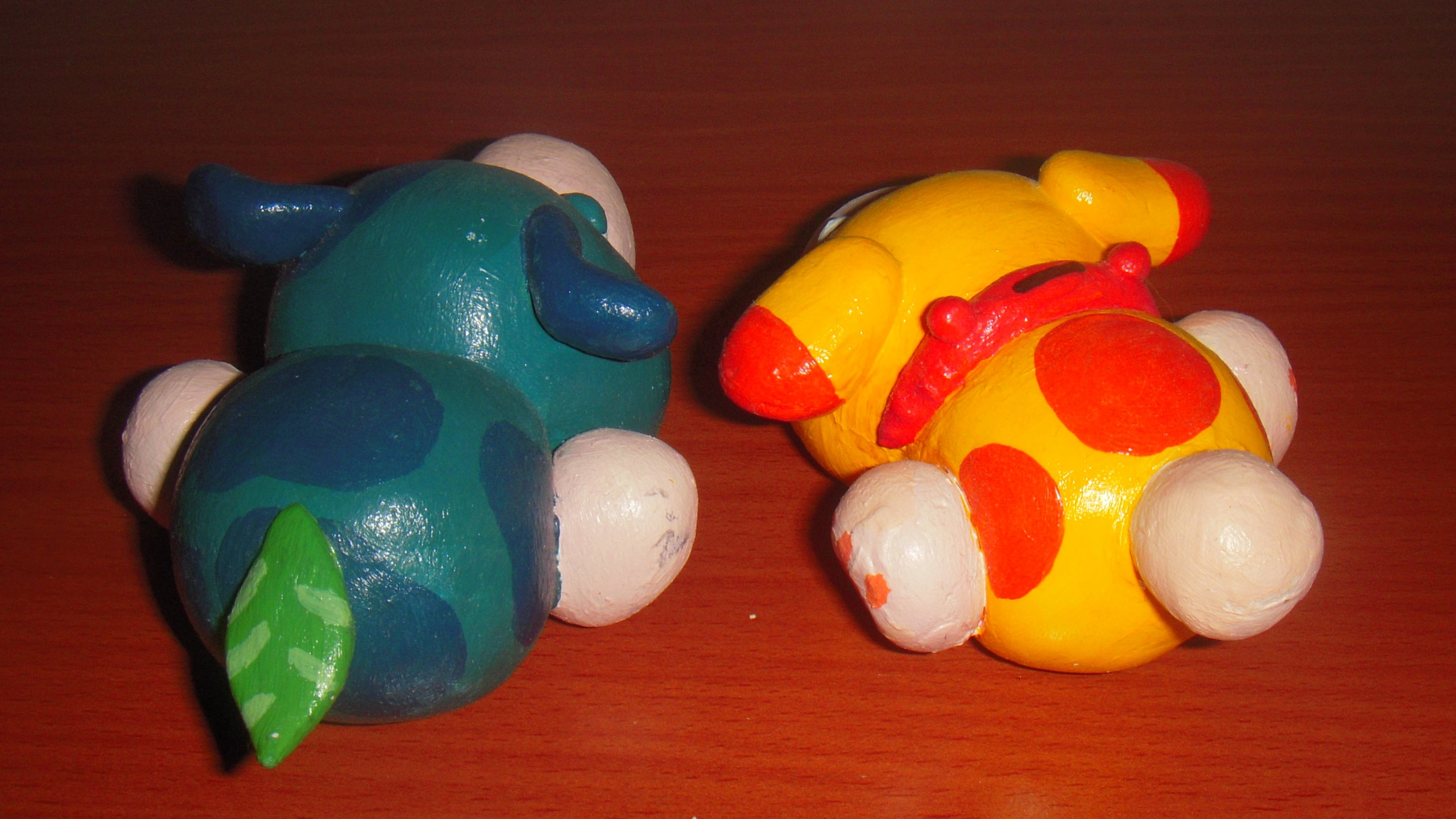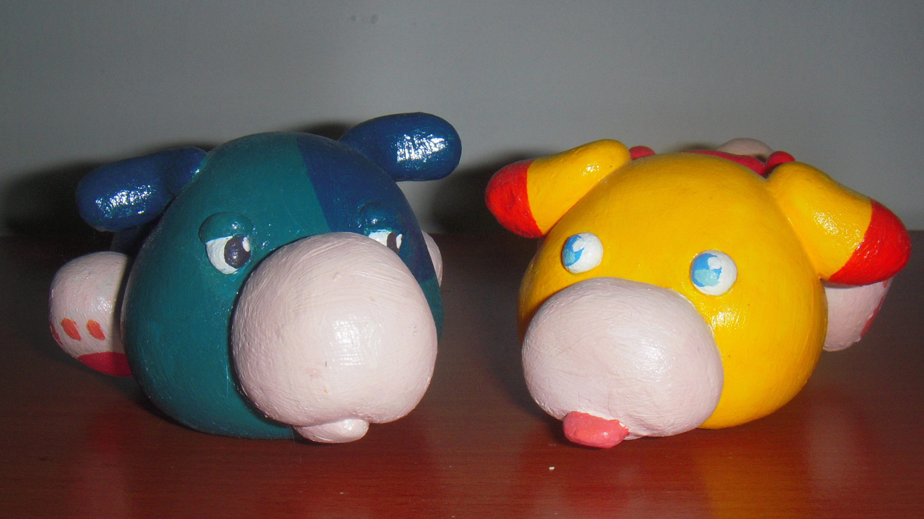 There's some hand-made crafts since middle school, don't mind with dusts on these craftworks! These stay on my desk like long ages, some colours may faded.