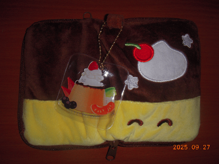 After bought the plush case, I also bought a snip, pudding-patterned wallet from random tiny shop, it matches with my keychain from Comic World Taiwan convention.